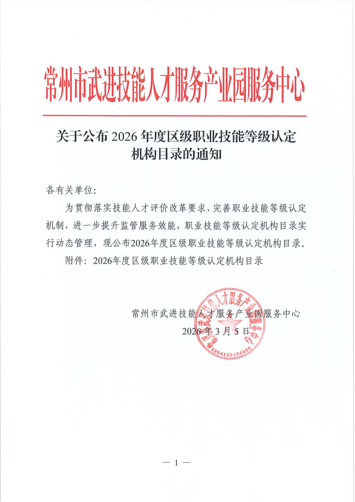 关于公布2026年度区级职业技能等级认定 机构目录的通知